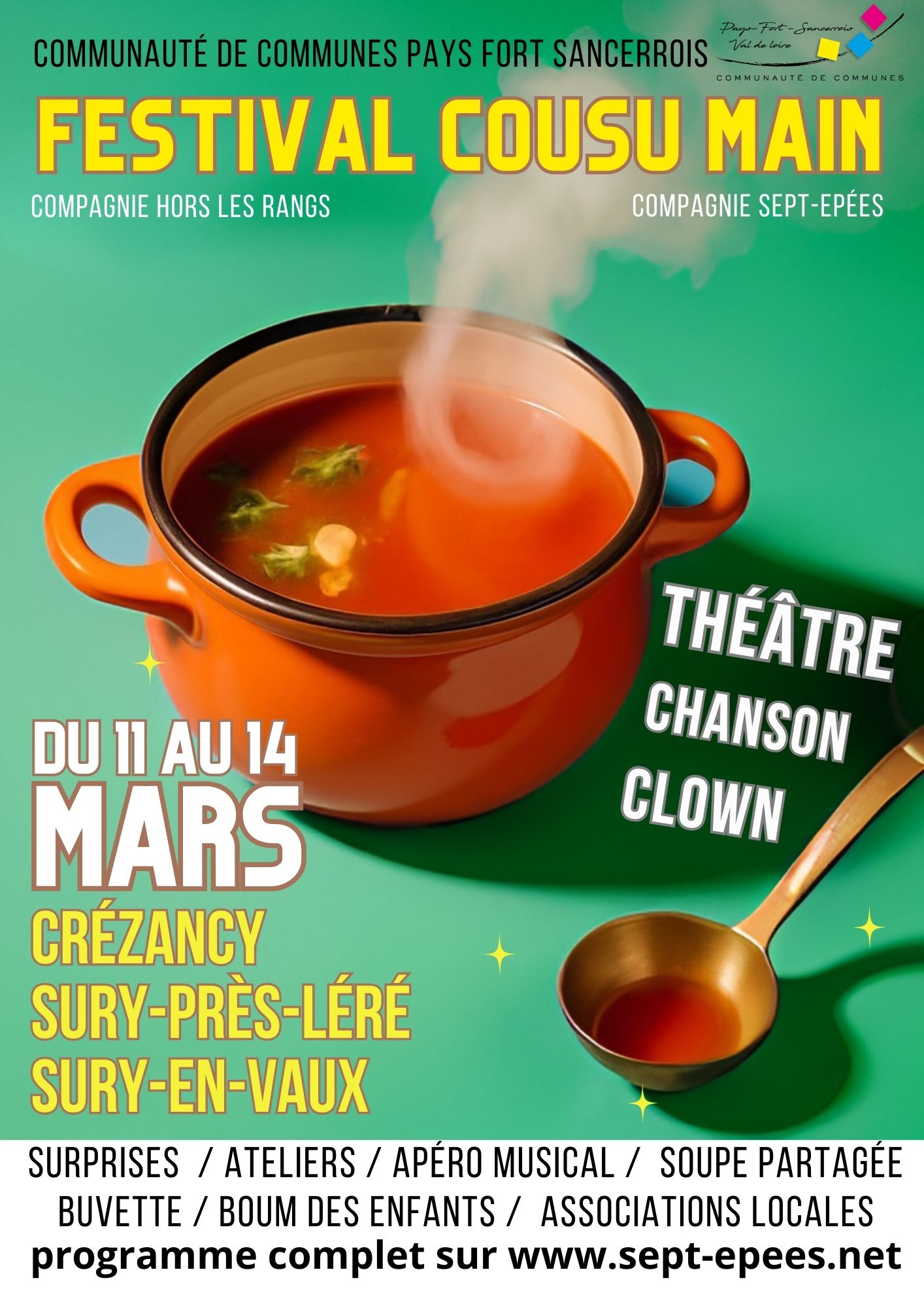 Samedi 14 à Sury-En-Vaux : deux spectacles, une boom des enfants et un repas partagé.